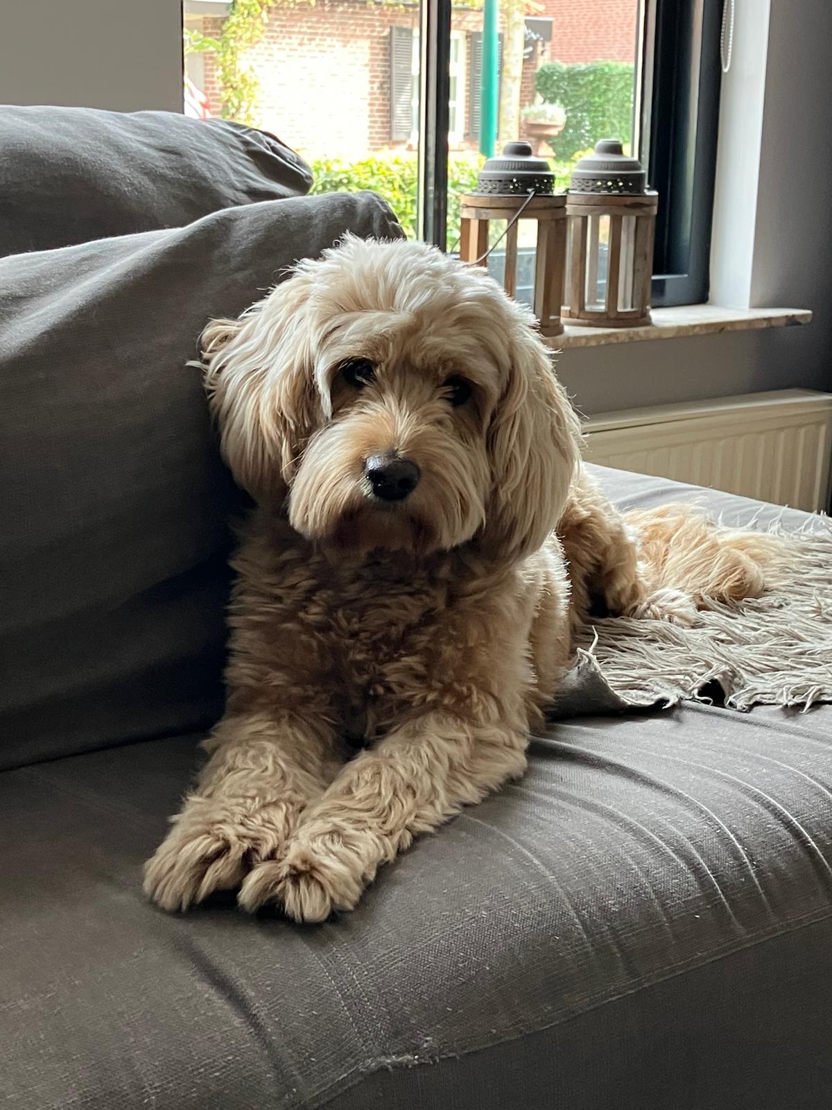 Cato is een medium doodle. Ze is aanhankelijk en loyaal, waardoor ze goed overweg kan met kinderen en andere huisdieren. Haar wavy fleece vacht en rustige aard maken haar een prettige metgezel.